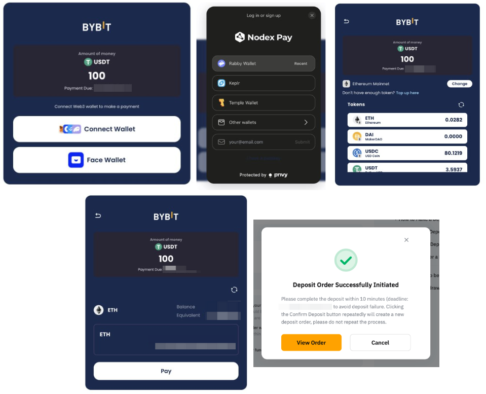 — Currently, Deposits via Nodex Pay are only supported on the Bybit website.
